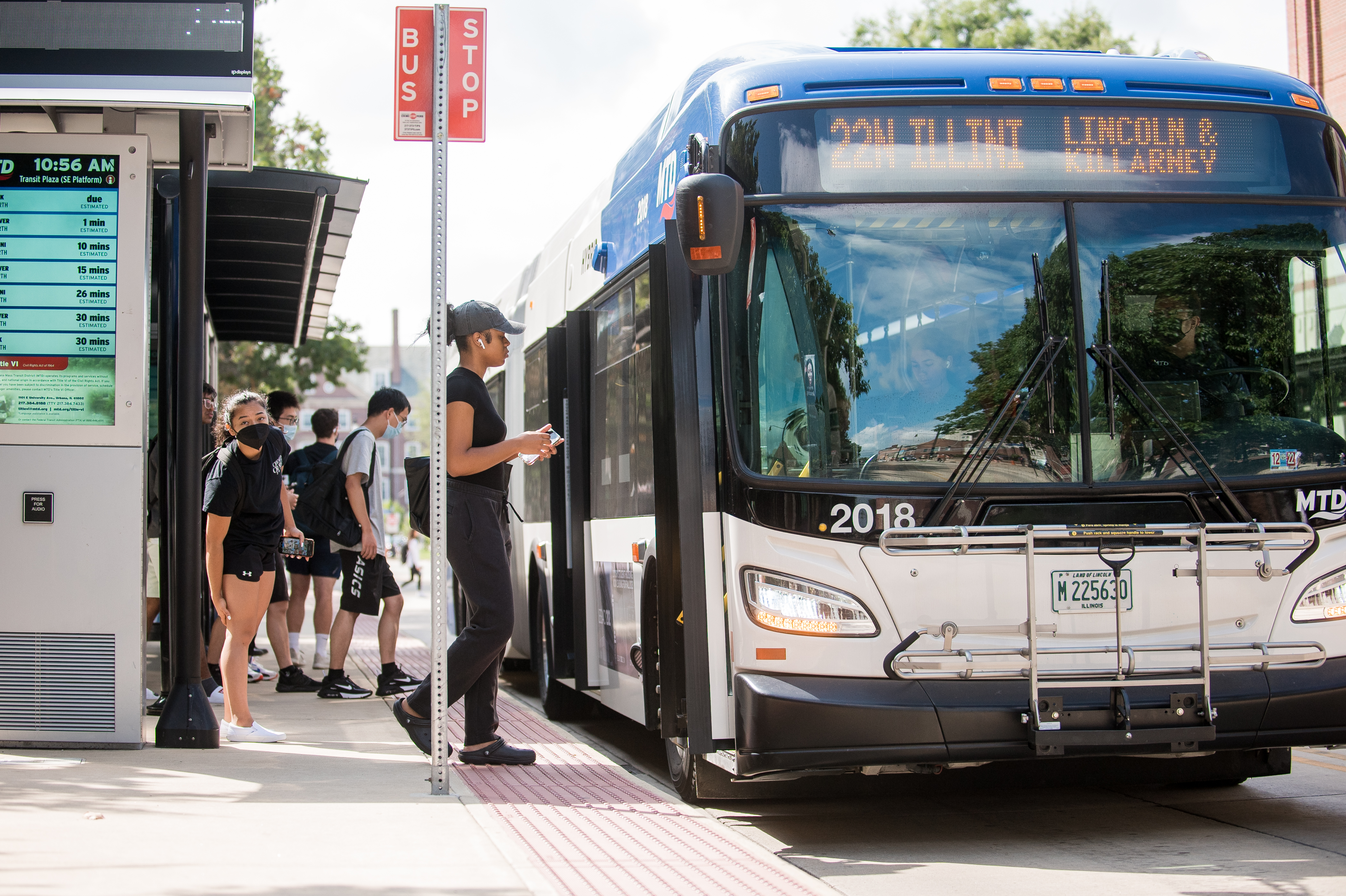 With a valid iCard, University of Illinois students, faculty, and staff have unlimited access to MTD bus service on 25 routes across campus and throughout the community, including fixed-route buses and on-demand van service. We look forward to serving you while you are here with us - welcome aboard, Illini!
