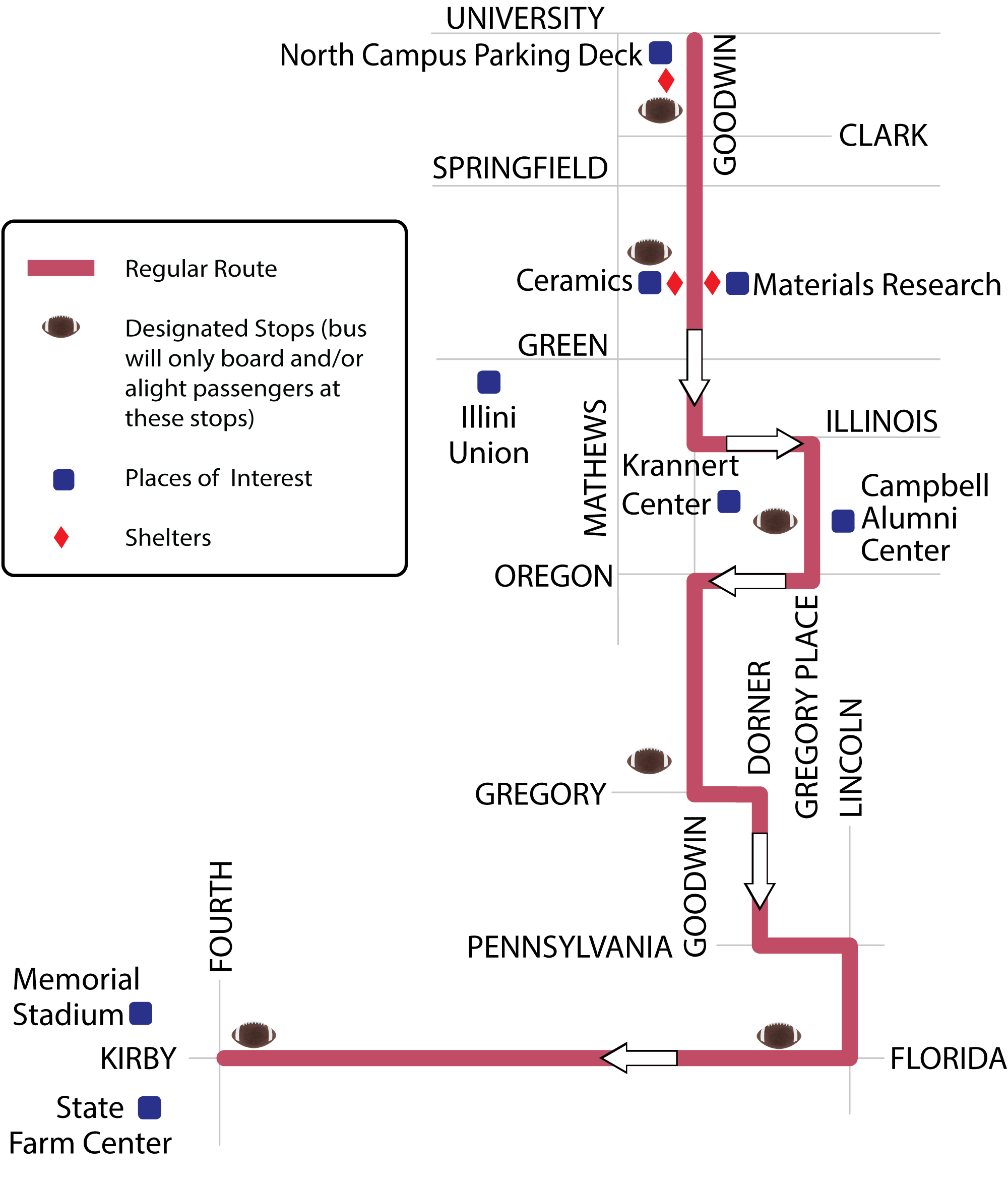 The 280 tranSPORT service is available to encourage alternative transportation to and from all Illini Football home games in order to alleviate traffic and parking congestion. This service is open to all members of the public.
